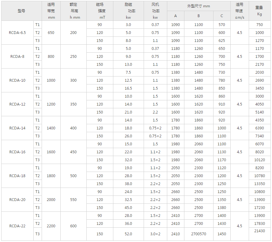 RCDA-T型超强风冷电磁麻豆视频传媒APP下载官网内部磁路设计独特,透磁深,吸力大,吸力远大于国标除铁器。轴流式风机强迫风冷,风量大,使除铁器散热快、温升低,保障除铁器无故障长期工作。